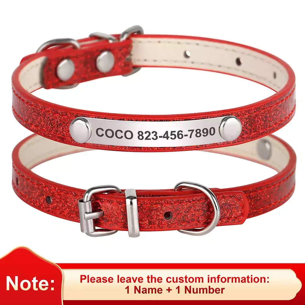 Tipo: coleira de gato personalizada de couro brilhante coleiras de gato para animais de estimação personalizado esculpido gatinho pequeno cão filhote de cachorro colar com placa de identificação gravada ?