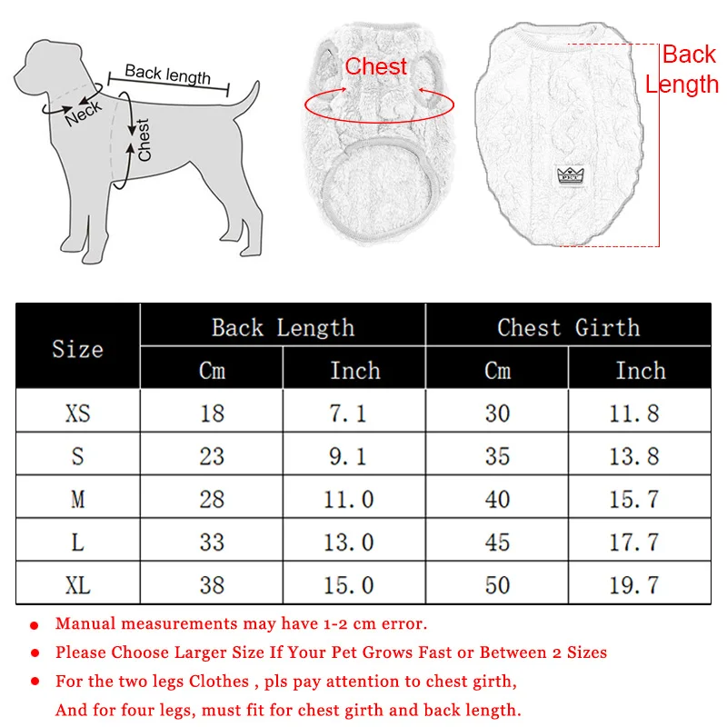 2. escolha um tamanho maior se seu animal de estimação crescer rápido ou entre2 tamanhosPara oroupas de duas pernas, por favor preste atençãocircunferência do peito,Epara quatro pernas, deve caber paracircunferência do peitoecomprimento das costas.