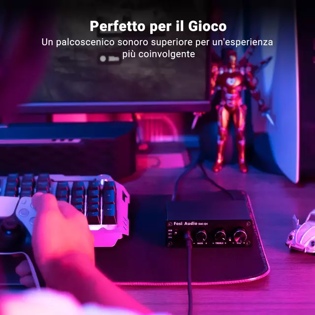 Fosi Audio Q4 - Mini Estéreo USB Gaming DAC & Amplificador de Fone de Ouvido Conversor de Áudio Adaptador para Alto-falantes Ativos/Alimentados por Casa/Desktop