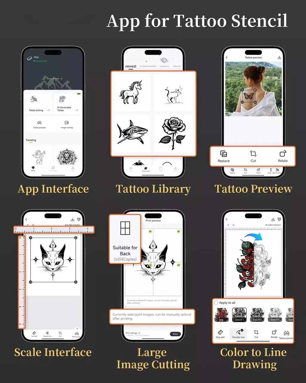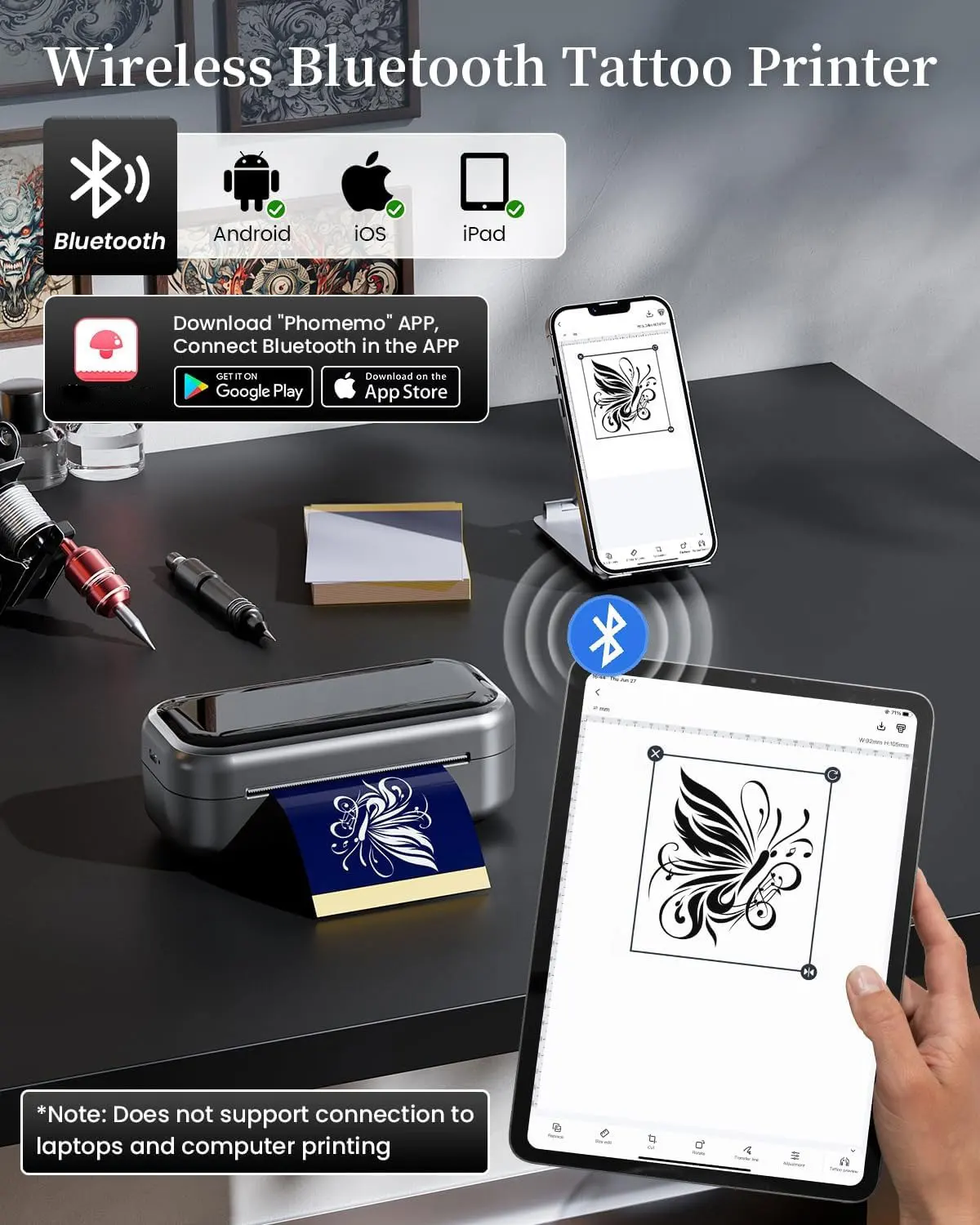 Impressora de estêncil Bluetooth TP31 para tatuagem compatível apenas com smartphones e tablets, Não compatível com laptops e computadores!