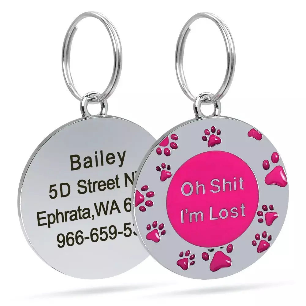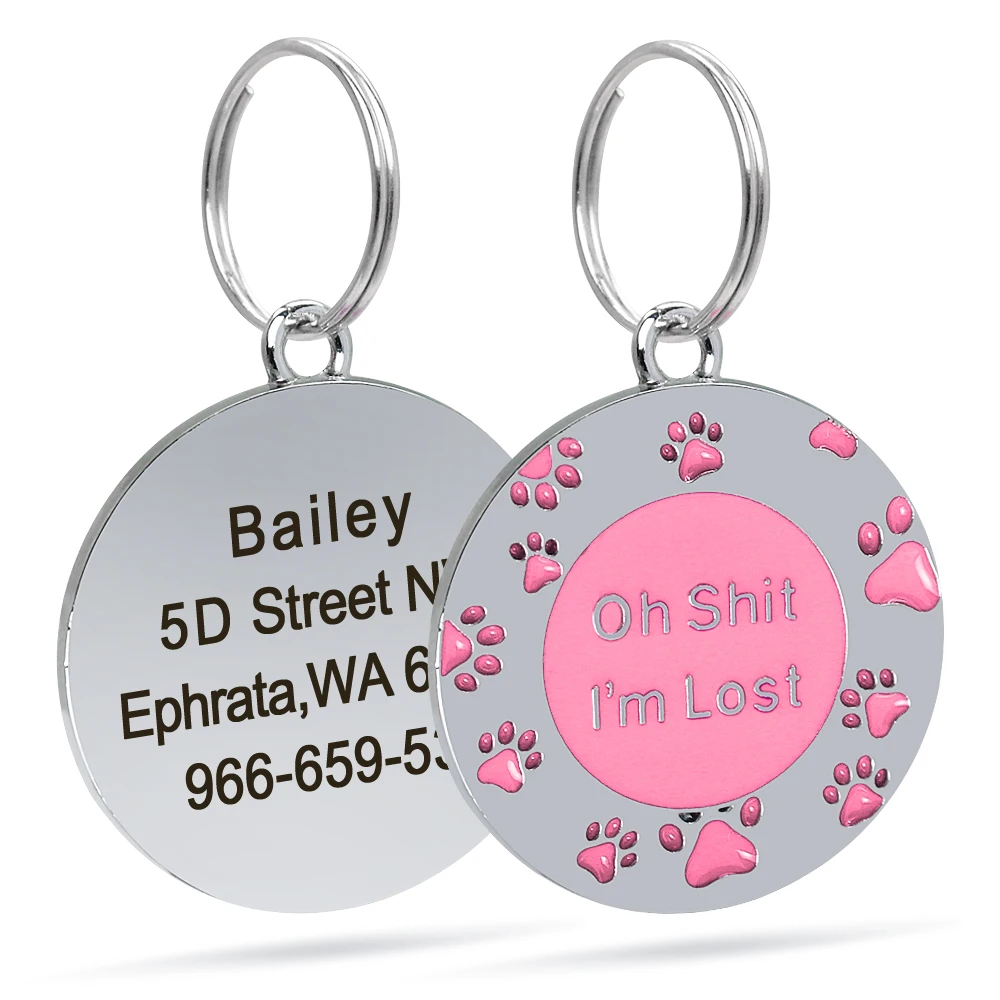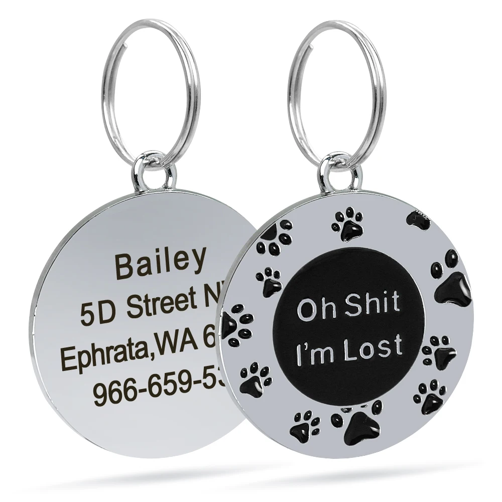 Nome: colar personalizado com etiqueta de identificação de cachorro e gato, acessórios redondos gravados, etiquetas de identificação de cachorro, suprimentos para animais de estimação para etiqueta de cachorro, produtos com nome