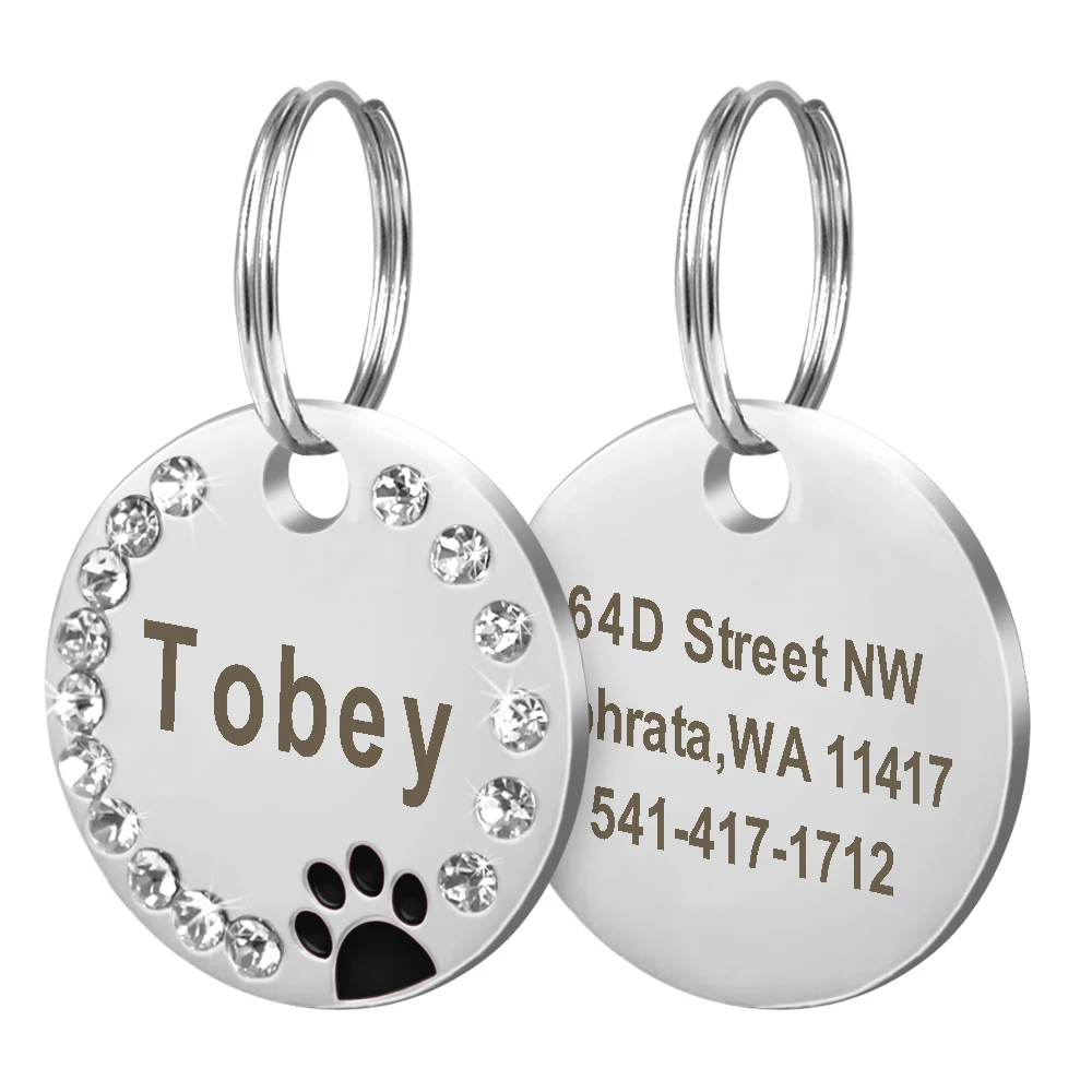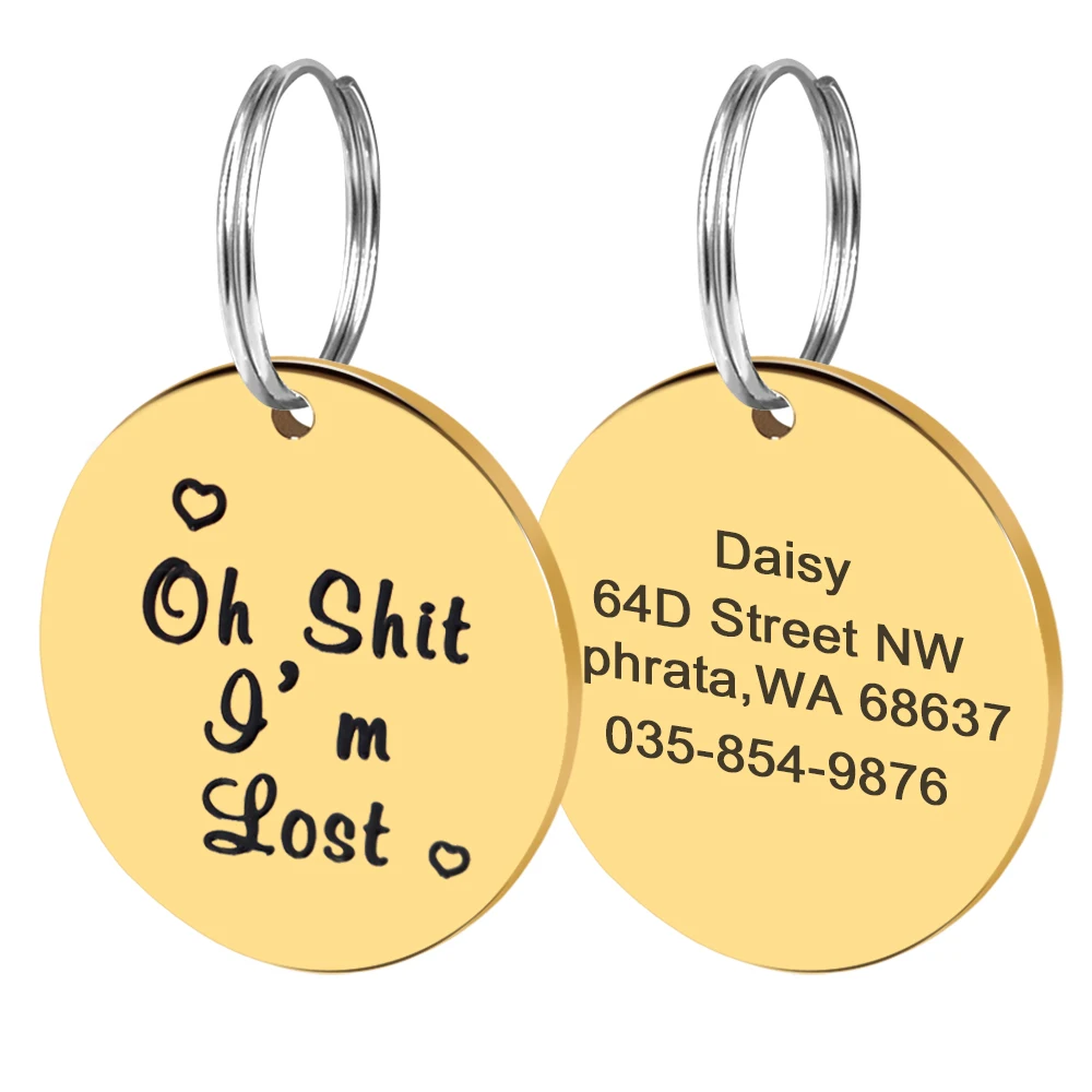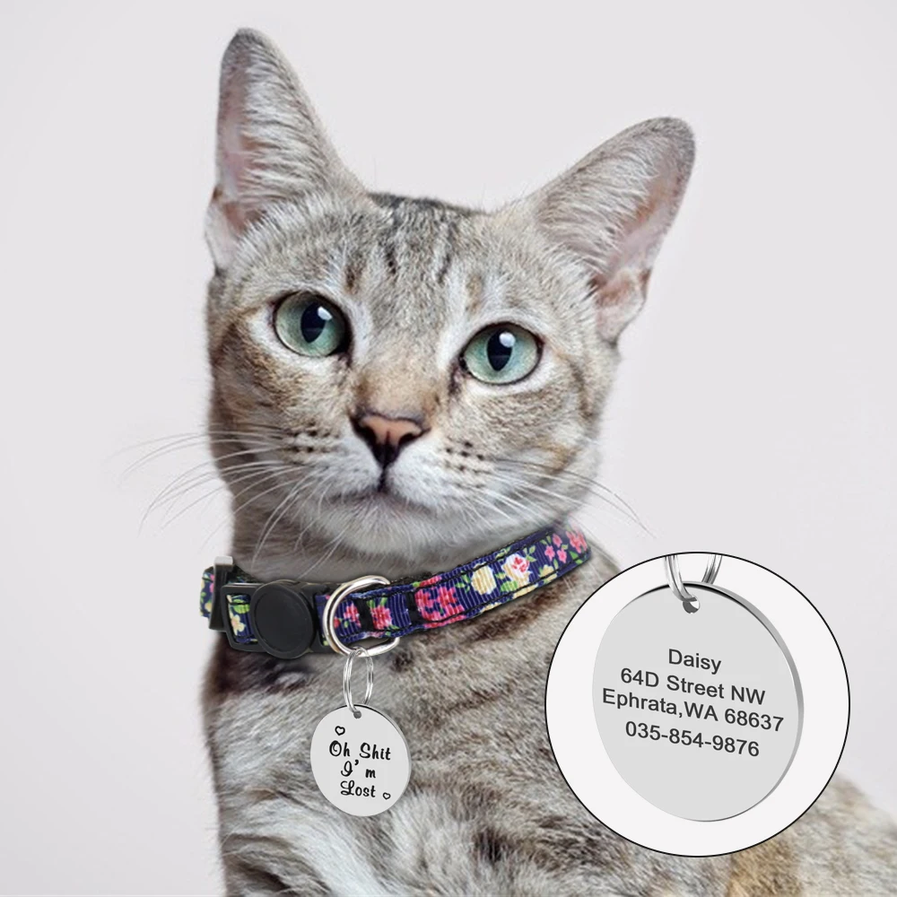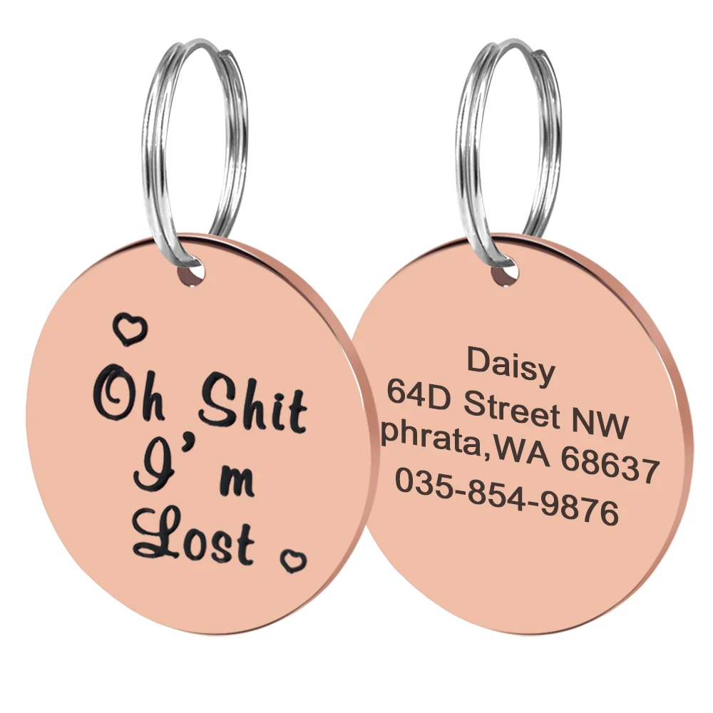 Nome: colar personalizado com etiqueta de identificação de cachorro e gato, acessórios redondos gravados, etiquetas de identificação de cachorro, suprimentos para animais de estimação para etiqueta de cachorro, produtos com nome