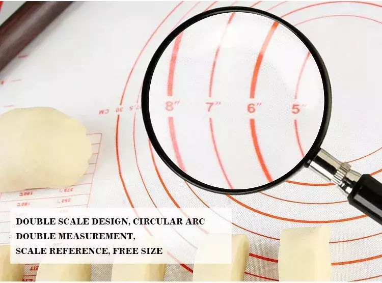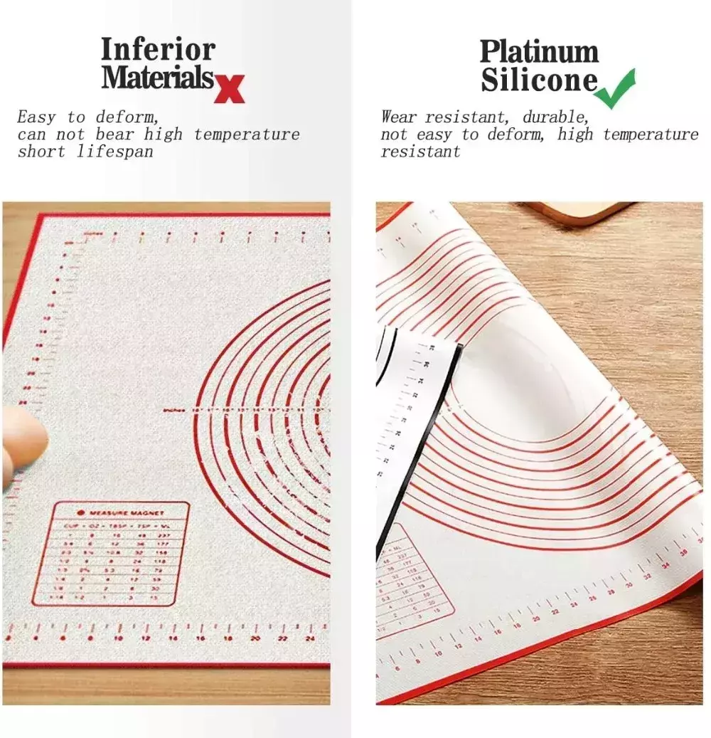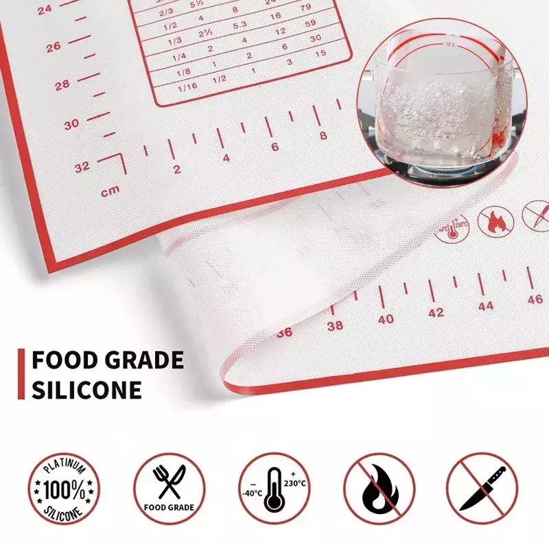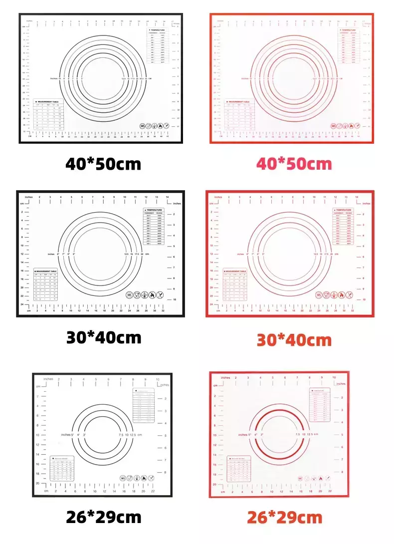Nossos tapetes são ótimos para trabalhar com materiais pegajosos.É muito fácil arrancar massa, torta, crosta de pizza, marca, biscoitos caseiros e massa de biscoito.